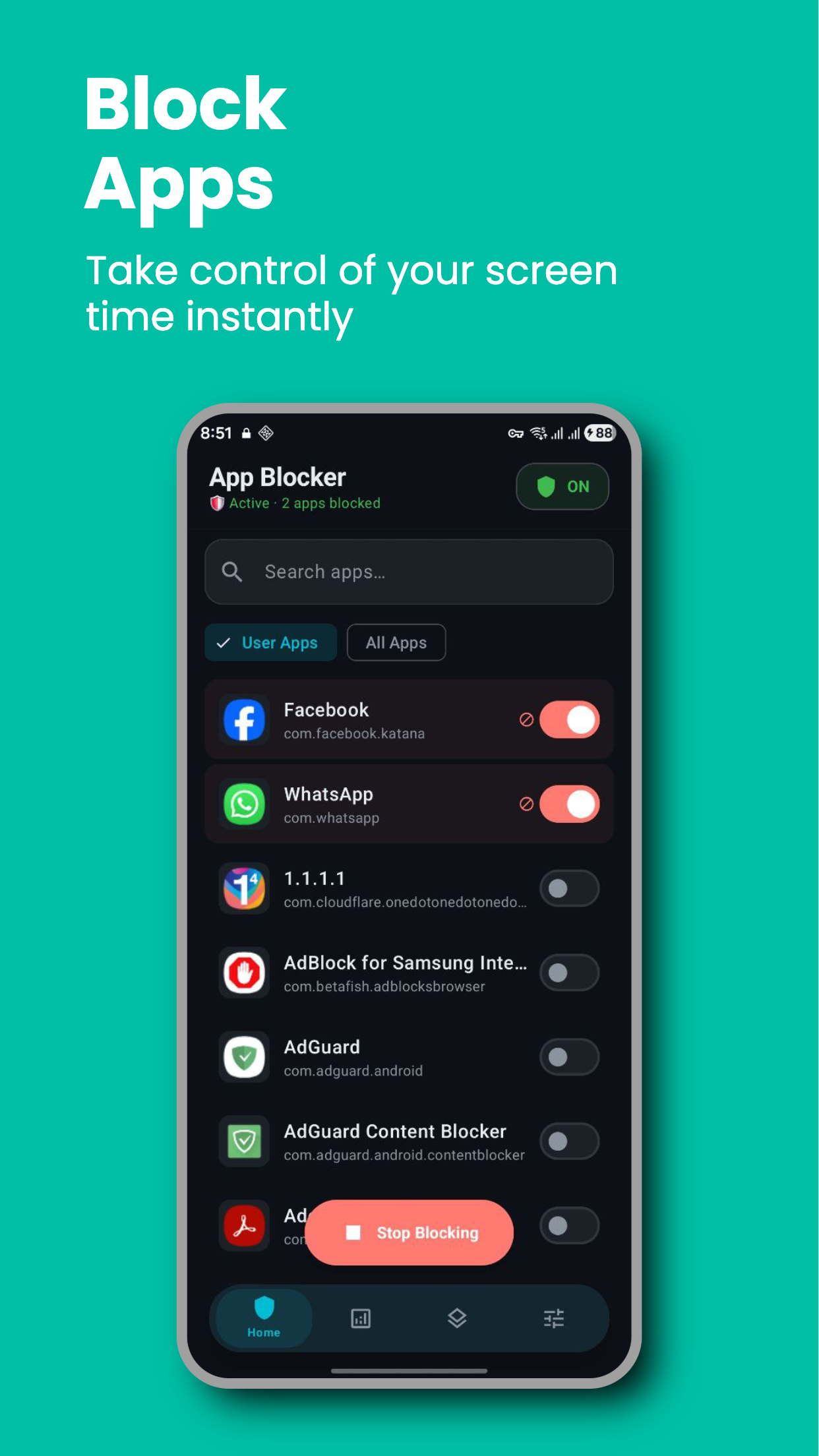 Blocked apps can't connect. You stay in control of your time.