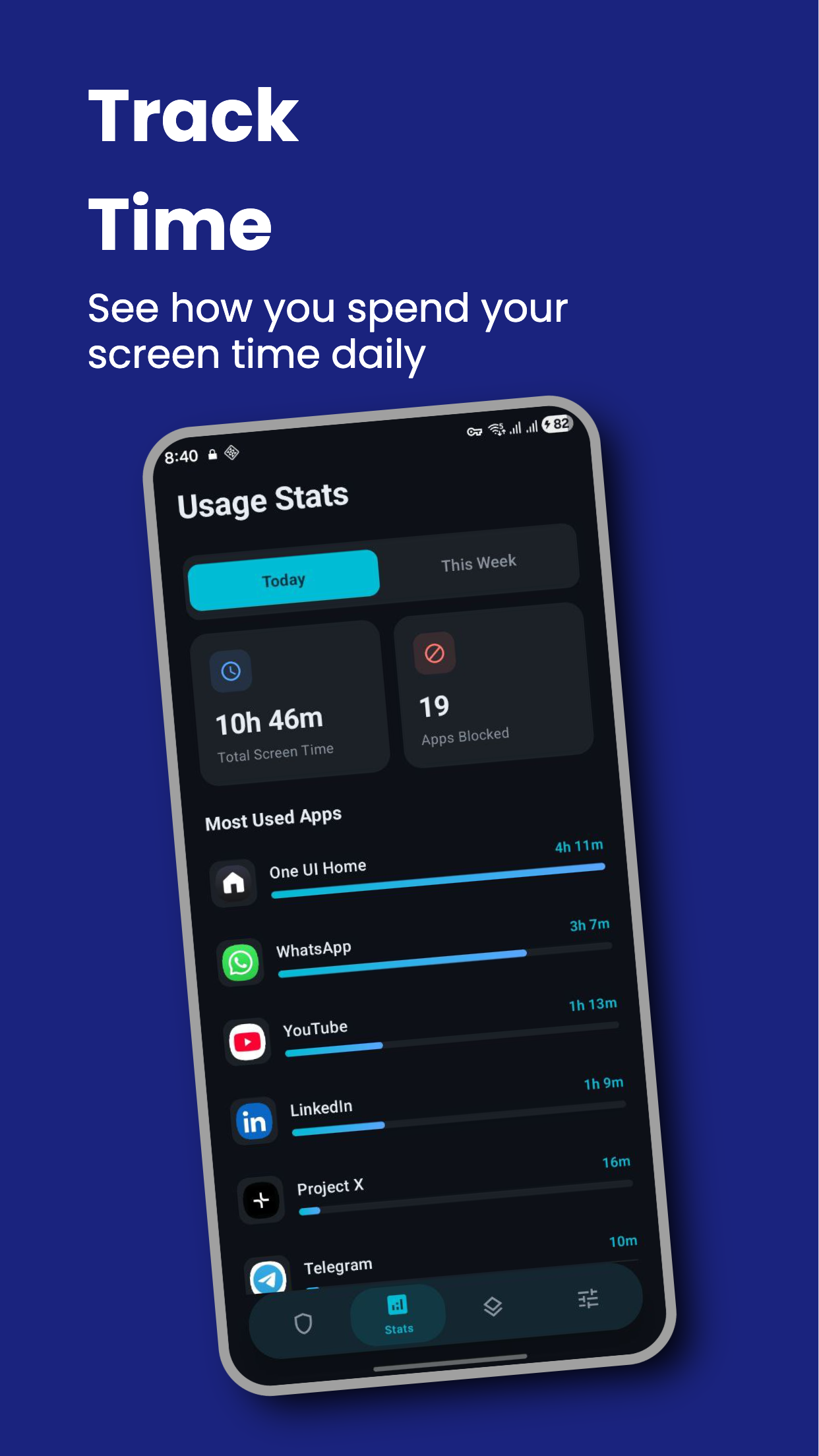 Track daily and weekly usage. See how much time you've saved.